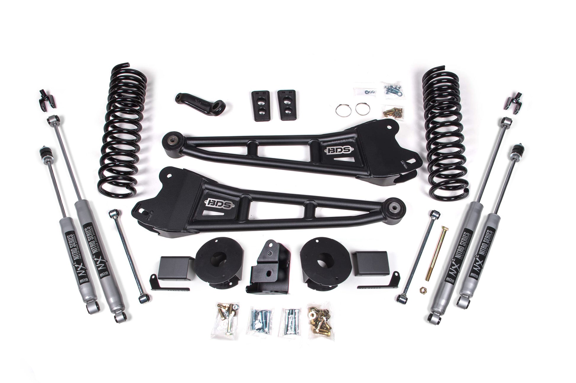 <p>Take your 2014-2018 RAM 2500 gas powered truck, equipped with factory rear air ride, to the next level with this 4-inch radius arm lift kit from BDS Suspension. Designed to improve stance, performance, and capability, this kit includes everything necessary to set your truck up right with clearance for up to 35" tires.</p>