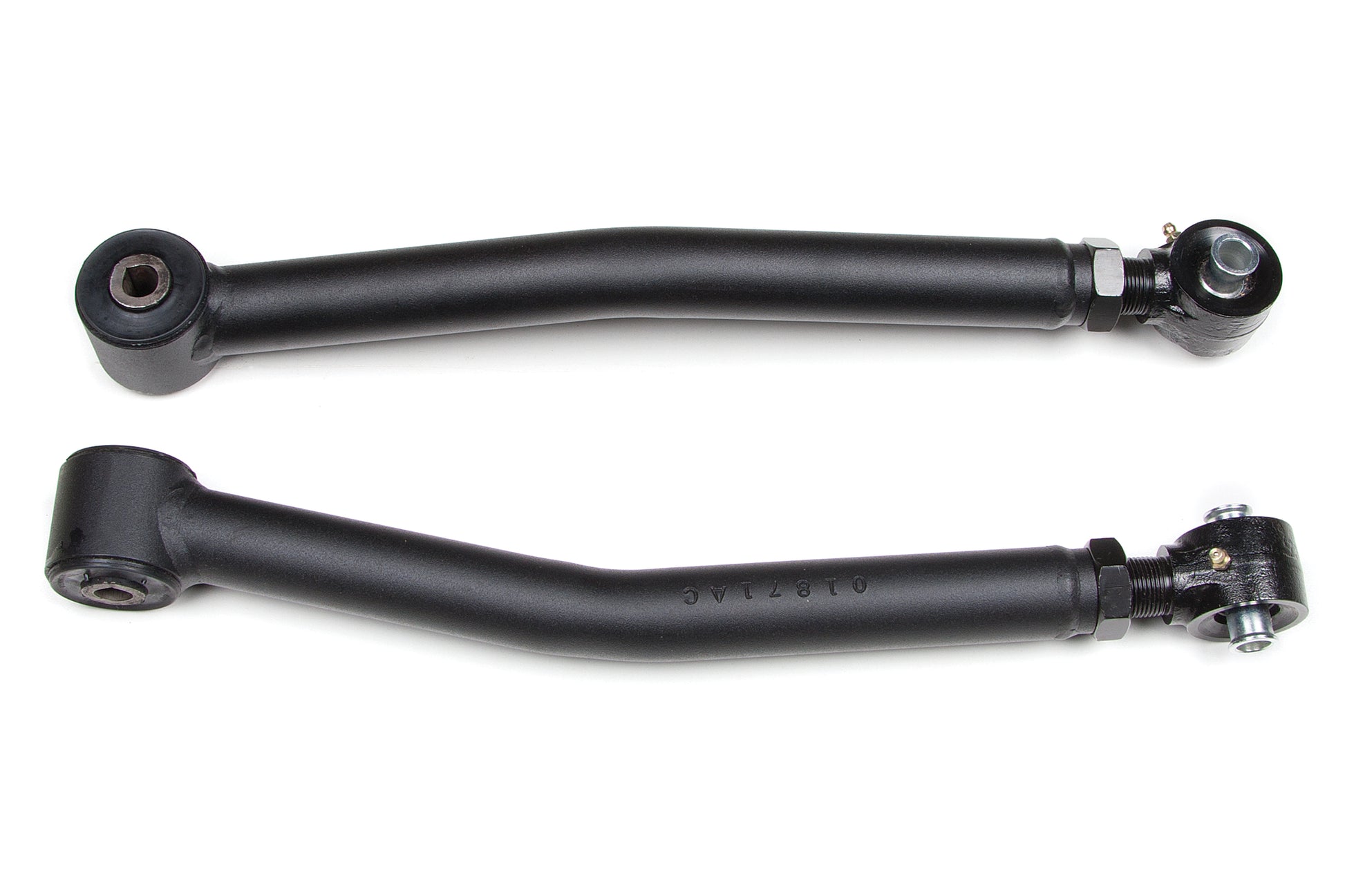 <p>At the axle end they utilize an OE-style rubber bushing for long service-free operation and better isolation of noise, vibration, and harshness (NVH). At the frame mount they feature a large, forged flex end for strength, durability, and off-road articulation. The forged flex ends allow length adjustments to correctly position the front axle and correct caster. Capable of 15-degrees of misalignment in either direction for more flex out on the trail.</p>