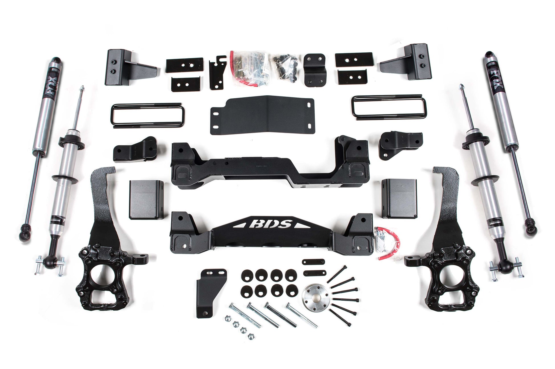 <p>This kit takes advantage of BDS's tried and true high-clearance design for improved ground clearance, strength, and offroad protection while correcting suspension and steering geometry for great on-road handling characteristics. Up front the kit utilizes FOX 2.0 strut shocks, high-arched 1/4-inch thick steel crossmembers, multipiece differential relocation brackets and skidplate designed for offroad protection. Steering geometry is corrected at the new taller ride height with a pair of massive CNC-machined ductile iron steering knuckles. These combined with the provided sway bar relocation brackets, brake line brackets, alignment cam bolts, supplied hardware and more provide a comprehensive front suspension lift ready for use and abuse.</p>