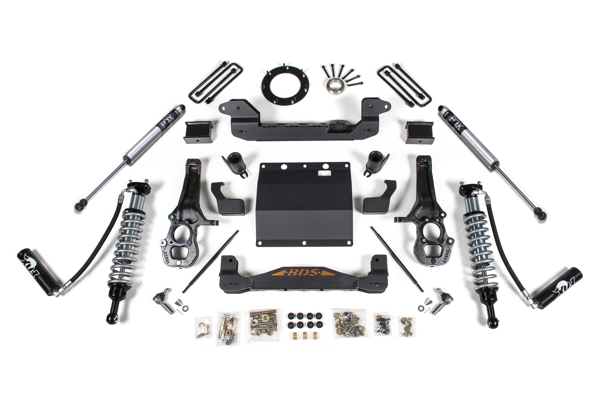 <p>This kit takes advantage of BDS's tried and true high-clearance design for improved ground clearance, strength, and offroad protection while correcting suspension and steering geometry for great on-road handling characteristics. Up front, the kit utilizes FOX 2.5 coil-over shocks, high-arched 1/4-inch thick steel crossmembers along with a multipiece differential relocation brackets and heavy duty skid plates built for offroad protection. Steering geometry is corrected at the new taller ride height with CNC-machined ductile iron steering knuckles and replacement tie rod ends allowing for ESC system compatibility. These combined with the provided sway bar links, bump stop extensions, CV spacers, supplied hardware and more provide a comprehensive front suspension lift ready for whatever you throw at it.</p>