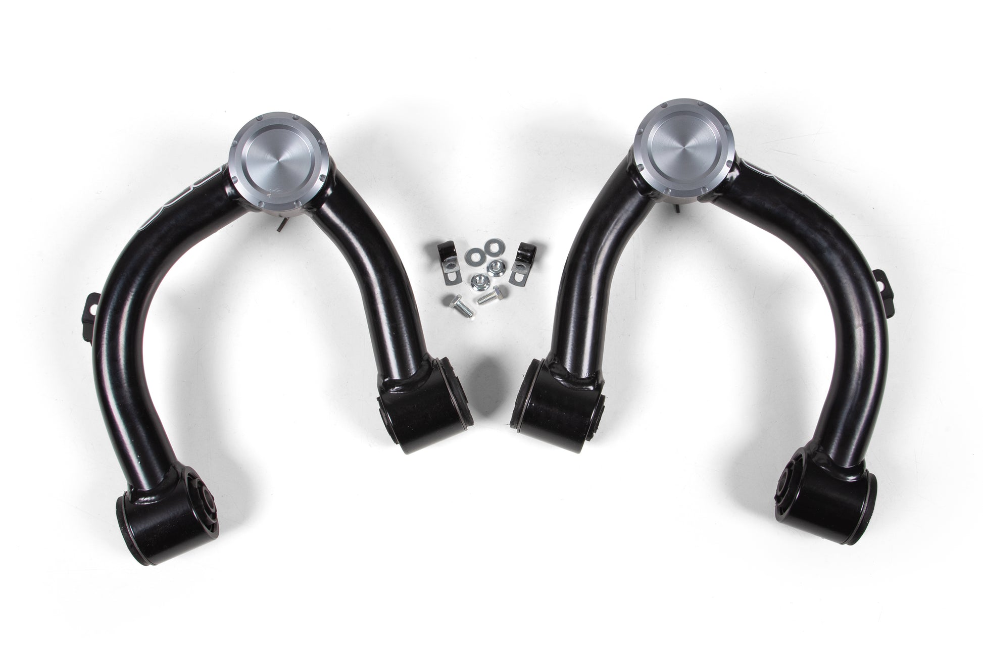 <p>These UCAs can be used with BDS lift kits and other lift and leveling kits on the market. The frame mounting ends feature durometer-specific rubber bushings and premium quality ball joints for smooth, quiet operation, and superior durability compared to arms featuring uniballs, poly bushings or heims.</p>