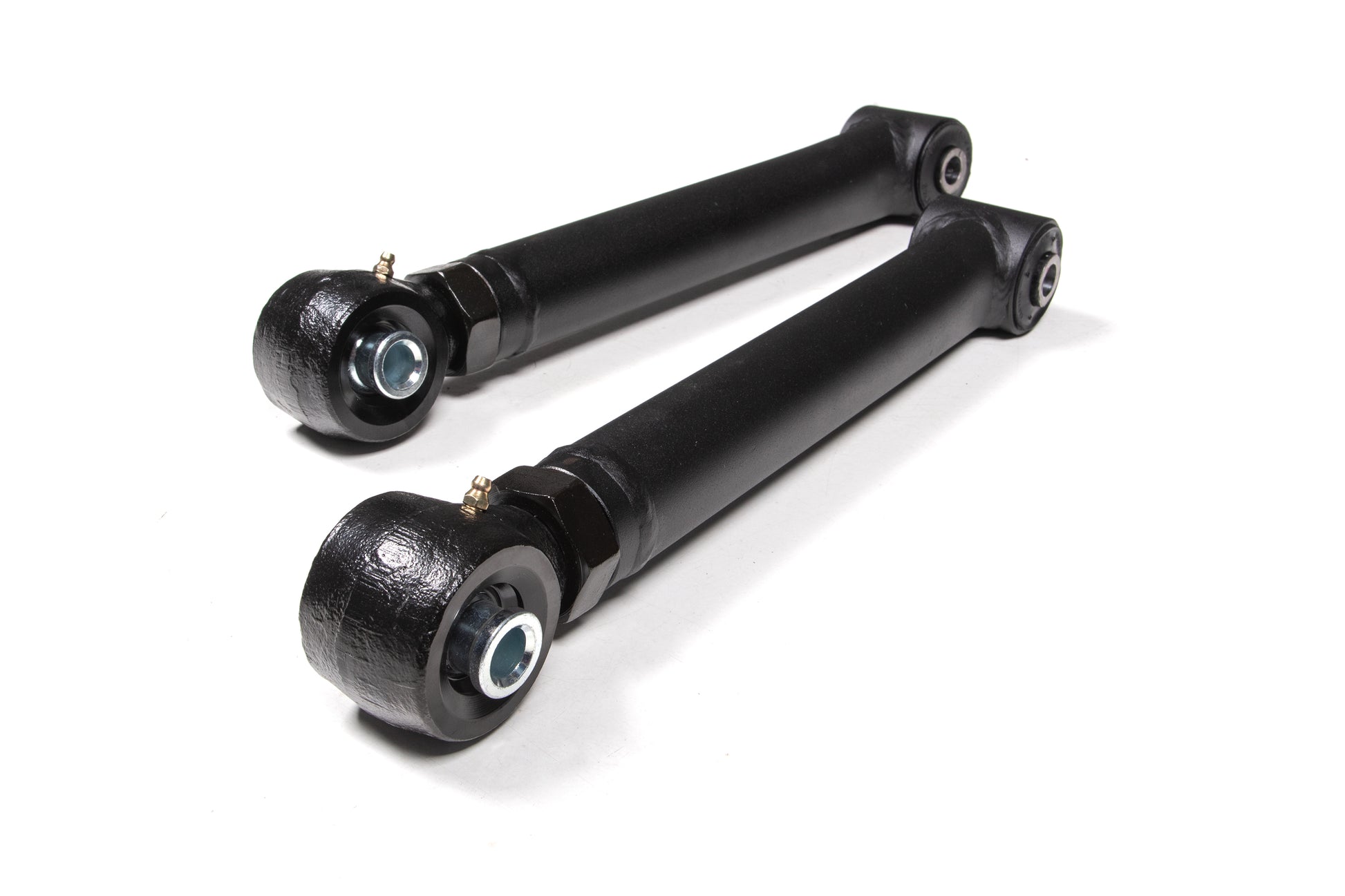 <p>At the axle end they utilize an OE-style rubber bushing for long service-free operation and better isolation of noise, vibration, and harshness (NVH). At the frame mount they feature a large, forged flex end for strength, durability, and off-road articulation. The forged flex ends allow length adjustments to correctly position the rear axle and correct caster. Capable of 15-degrees of misalignment in either direction for more flex out on the trail.</p>