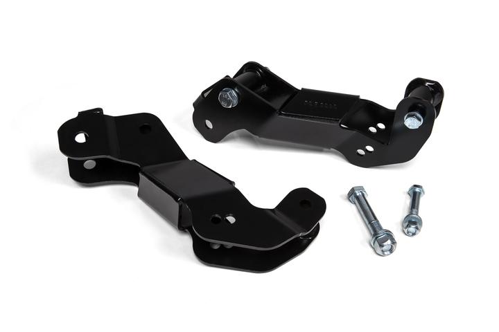 Improve the handling of your lifted Jeep Wrangler JL or Gladiator JT with JKS Front Control Arm Correction Brackets. Designed for use with 2"-4.5" lift kits the brackets improve control arm operating angle to mimic or improve on factory arm angles as well as improve anti-dive during braking. Lowering the control arm mounting point slightly places the arms closer to the axle mount which corrects caster and geometry caused by the lifted ride height. Two mounting hole positions correct geometry for given lift heights. Heavy duty, 1pc, fully boxed 7GA steel brackets install inside the factory upper and lower control arm mounts with the factory hardware. The fully gusseted design you extra confidence both on and off road. For ultimate performance, Control Arm Correction Brackets can be used with JKS adjustable control arms.