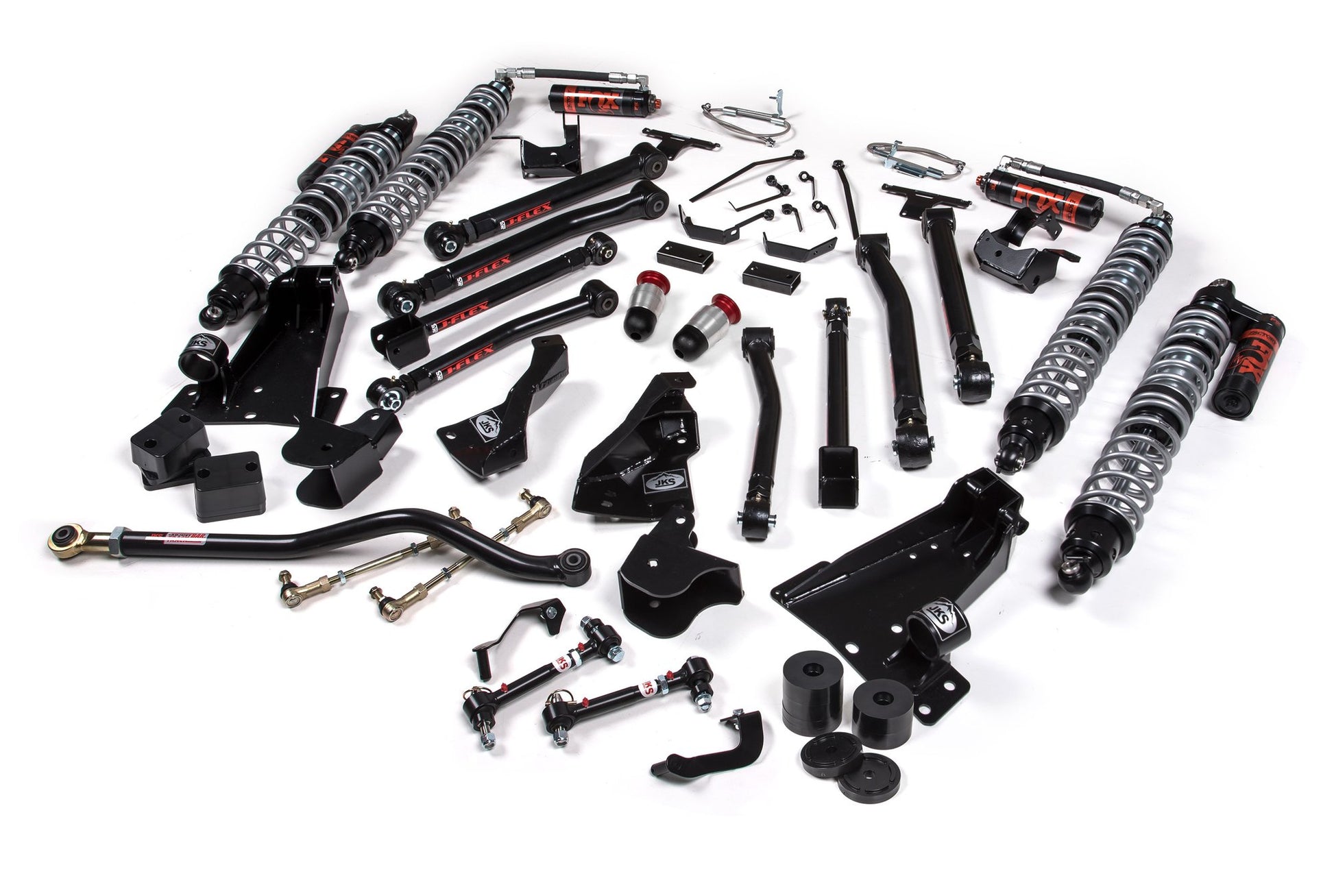 J-Max pulls out all of the stops to offer a truly performance driven suspension package. At each corner are custom tuned FOX 2.5 factory race series coilovers with DSC adjustment. These coilovers offer race proven technology with a larger 2.5” diameter body, dual rate springs and (DSC) dual speed compression adjustment for maximum tunability. Each of the 8 control arms, upper and lowers, front and rear are upgraded to J-Flex adjustable control arm for improved strength, offroad performance and adjustability. In addition, these kits feature high strength bolt-on coilover mounting brackets, an adjustable front track bar, sway bar quicker disconnects and more offer take your Jeeps trail performance and strength to the next level. It should be noted that an aftermarket front driveshaft is strongly recommended due to additional travel capable.