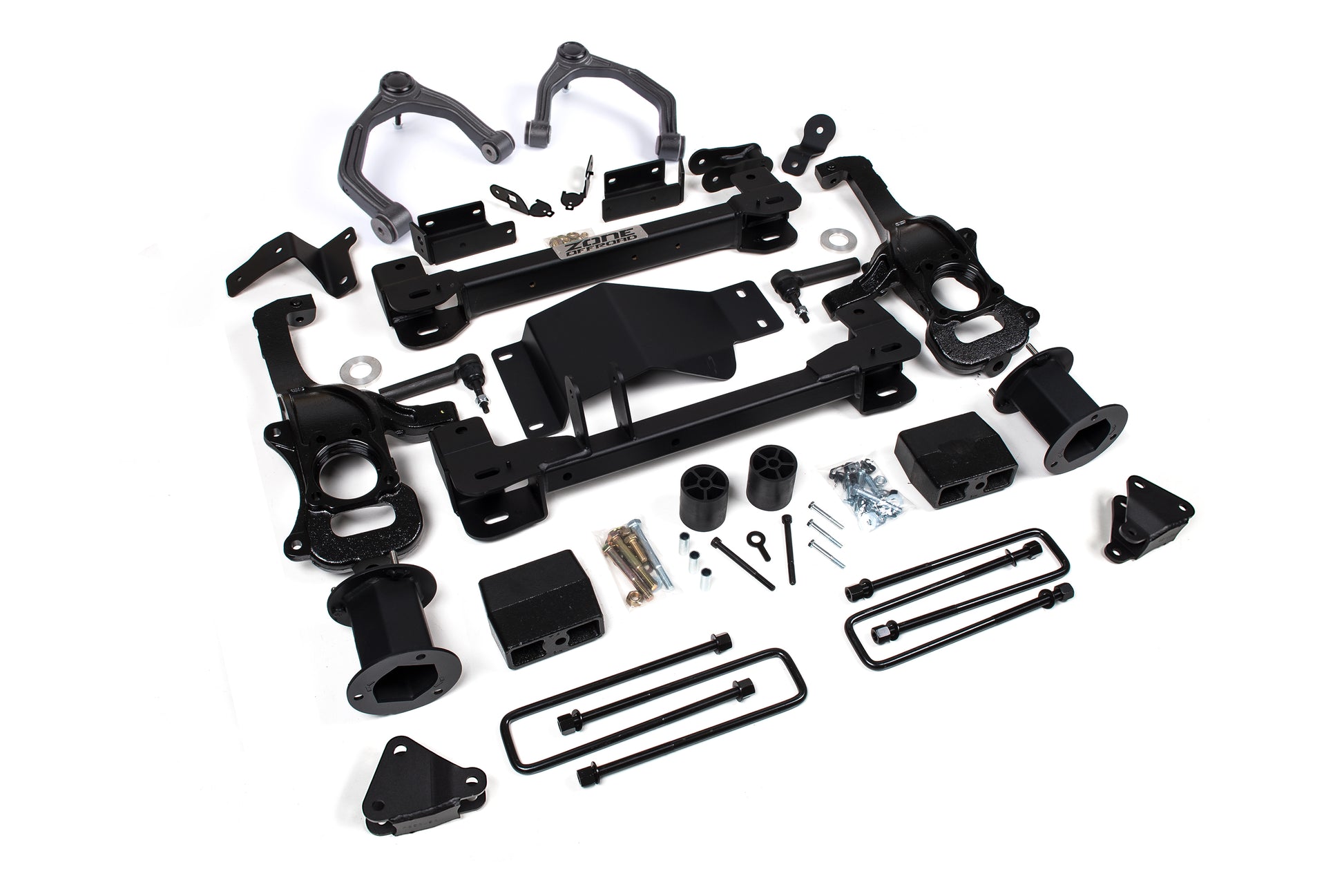 Take your GMC Denali 1500 to new heights with this 6" lift kit from Zone Offroad. These kits are designed to allow full functionality oft he ARC (adaptive ride control) system factory installed on the Denali to retain all the features of your truck at the new lift height. Kits include everything needed from high strength crossmembers and steering knuckles to strut spacers and ARC sensors, adventure series upper control arms, differential relocation brackets and more. Get the look, performance, and capability your truck deserves with clearance for up to 35" tires.