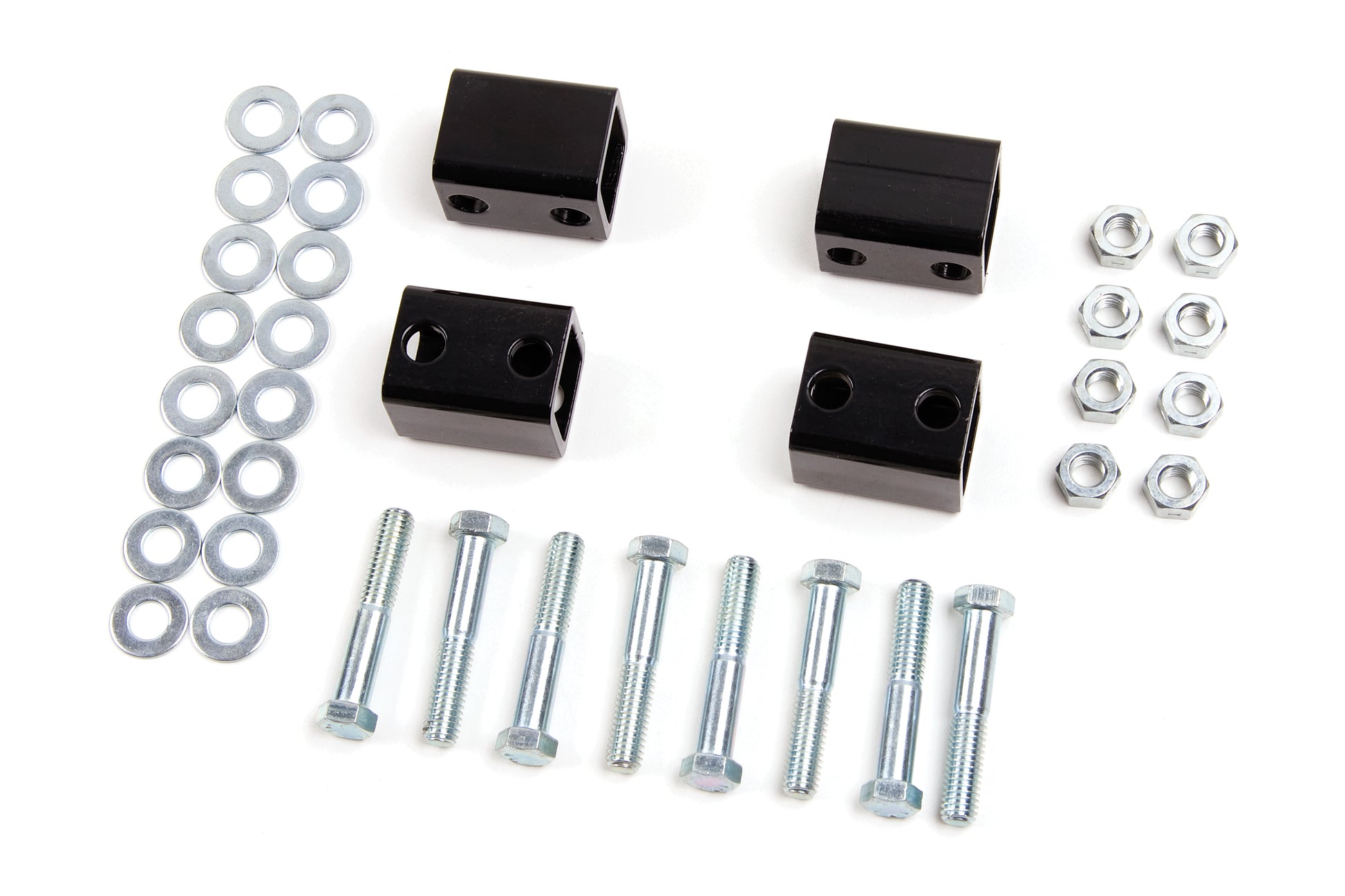 These carrier bearing drop kits eliminate driveshaft vibrations in your lifted truck by restoring rear drive shaft angles. This steel carrier bearing drop kit is powder coated for durability and includes mounting hardware for a complete install.